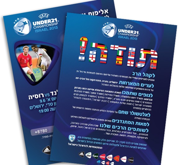 עיצוב גרפי לפלייר תודה עבור הנבחרת הצעירה בהתמודדות אליפות אירופה שנערכה בארץ