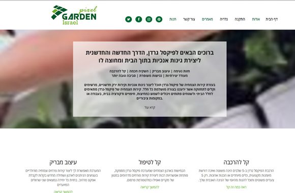 צפיה באתר »עיצוב ובניית אתר לחברה פיקסל גארדן העוסקת במתקני קירות צמחיה שיוצרים גינות אנכיות וקירות ירק חדשניים