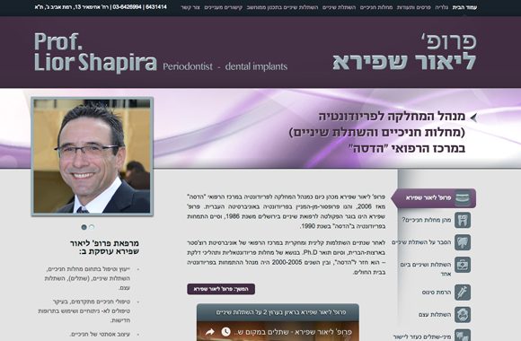 צפיה באתר »עיצוב ובניית אתר עבור פרופ' ליאור שפירא מנהל המחלקה לפריודונטיה במרכז הרפואי "הדסה"