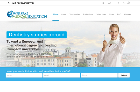 צפיה באתר »עיצוב ובניית אתר למכללת מכינה ללימודי רפואה בחו״ל בהנהלת ד״ר שחר גבע.